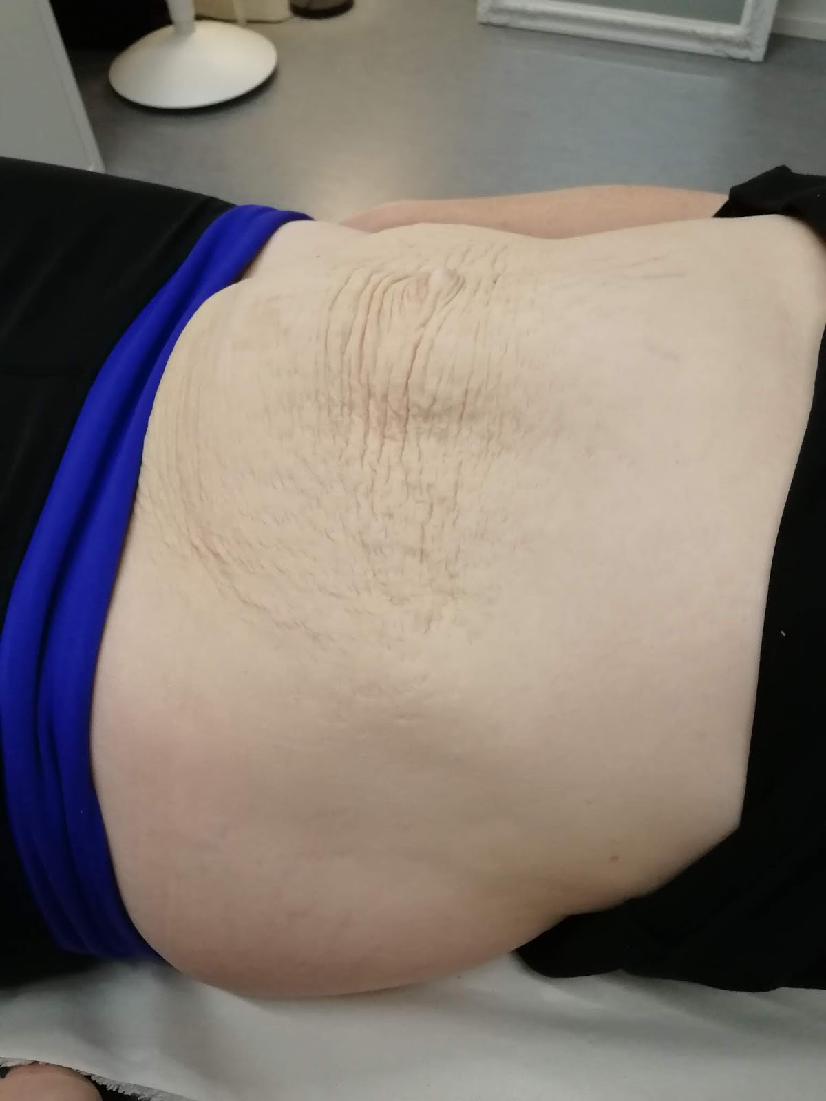 Kuvassa asiakkaalla on jäänyt vatsalihasten erkaumaa ylävatsalle,